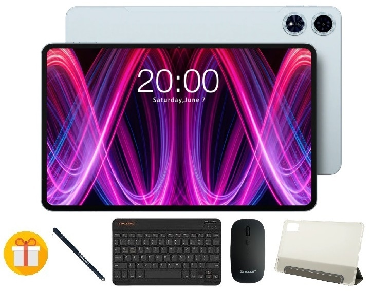 Планшет, адаптер питания, инструкция, чехол, клавиатура, стилус, мышь